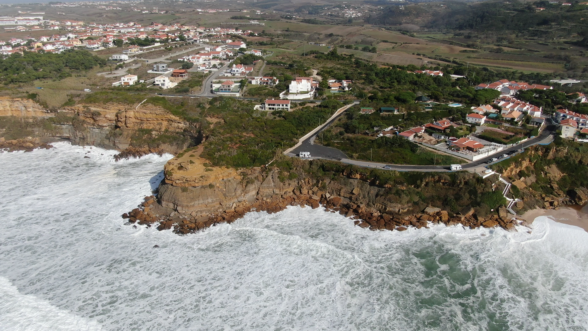 We left Obidos reasonably early (for us that is!) and we were making good time along the coast road. Even though there was not much wind, the sea was really choppy and there was some atmospheric sea mist blowing in. Then we spotted a lovely bay at Praia São Lourenço and decided to stop for lunch and a quick flight with the drone to try and get a nice couple of shots.