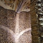 The Capela dos Ossos at Evora. The remains of around 5000 people believed to have been used to line the chapel