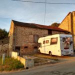 Our first view of the Pyrenees in the distance as we approached the town of Gan. The Aire was in the corner of a car-park and next to a quiet stream and free.