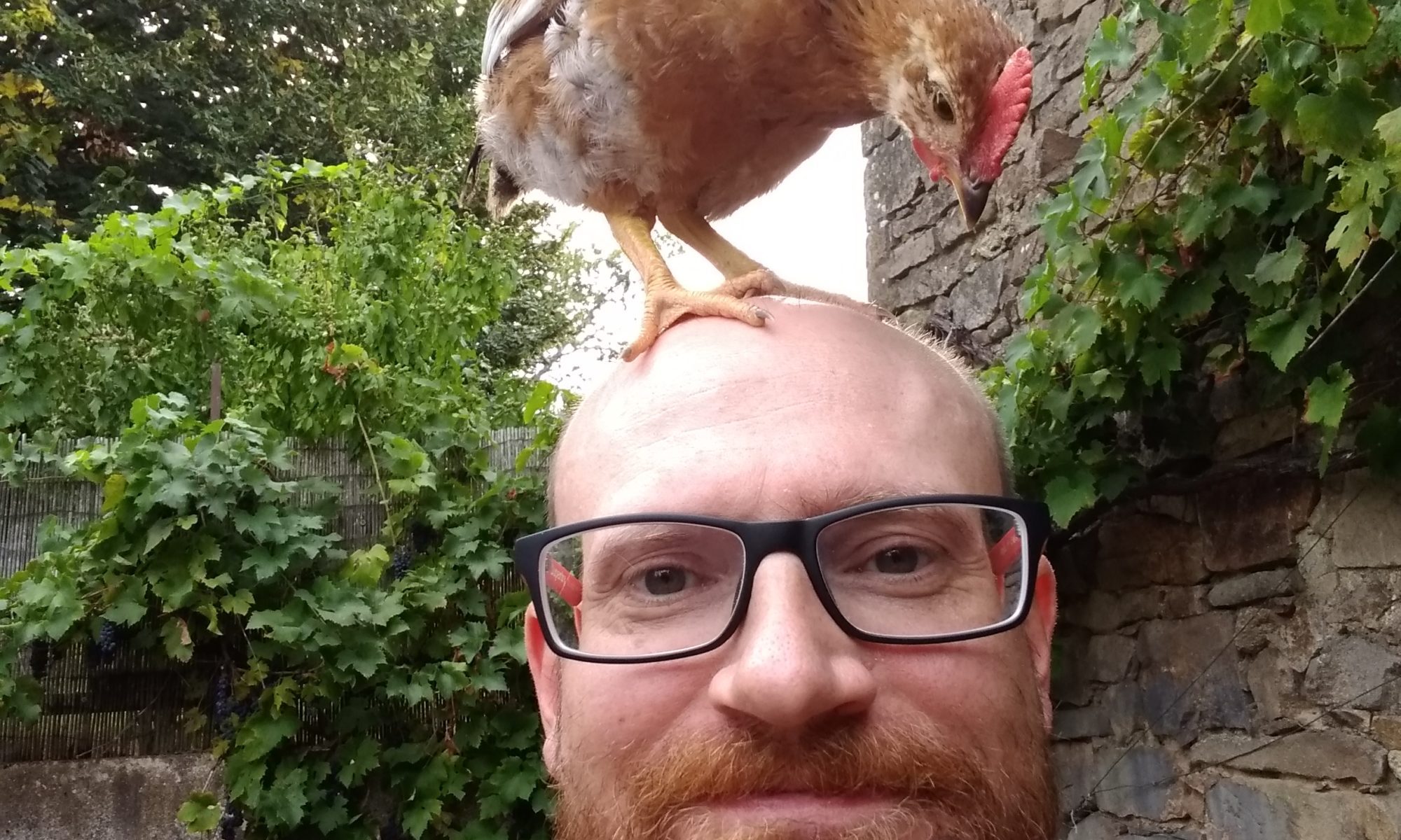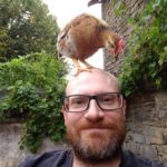 St Amand Magnazeix – Toby with a chicken on his head.
